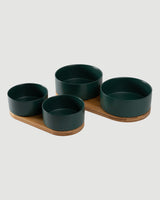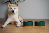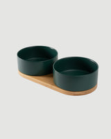 Die exklusive Dogbar aus zwei hochwertigen Keramik-Näpfen und Holzunterlage besticht durch sein schlichtes und zeitloses Design.