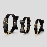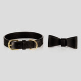 Hundehalsband aus Leder Luxury Line Set mit Schleife in schwarz